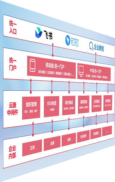 对协作平台提供支持服务,,支持企业应用与协作平台对接,,包含组织同步、、、消息集成、、、、待办集成等。。支持目前主流的协作平台:钉钉、、、企微和飞书。。